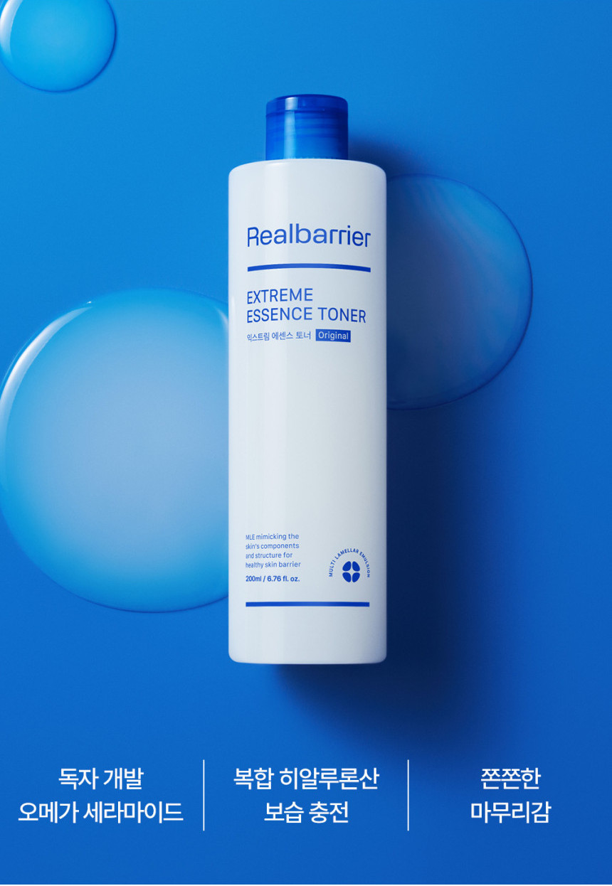 The Real Barrier Extreme Essence Toner is an essence-type milk toner that helps replenish your skin with moisture after cleansing. This nourishing toner contains the patented MLE Skin Barrier Formula, which uses a complex of ceramides to help protect and strengthen the skin barrier. The calming trio, panthenol, allantoin and madecassoside, work together to help calm and protect irritated skin, while 5 kinds of hyaluronic acid helps strengthen the skin’s moisture-retaining ability.