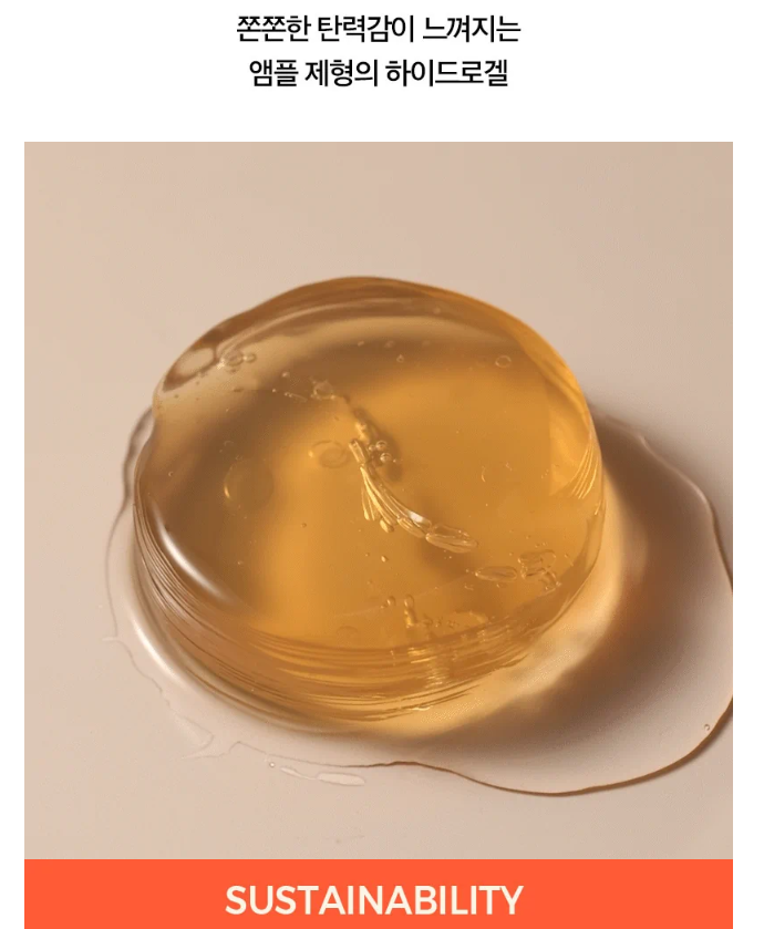 Each orange-colored hydrogel patch—tinted naturally with gardenia extract—is packed with essence to boost moisture and elasticity.
