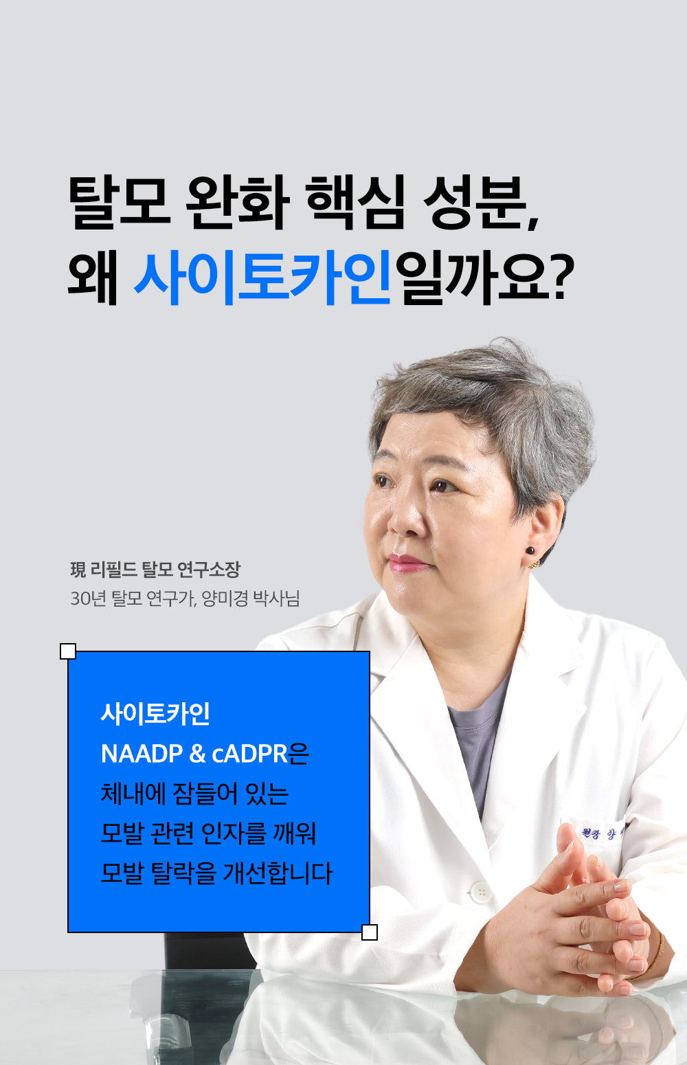Developed by Dr. Myung-Kyung Yang, a leading hair loss researcher from Seoul National University Medical School, with over 30 years of experience.