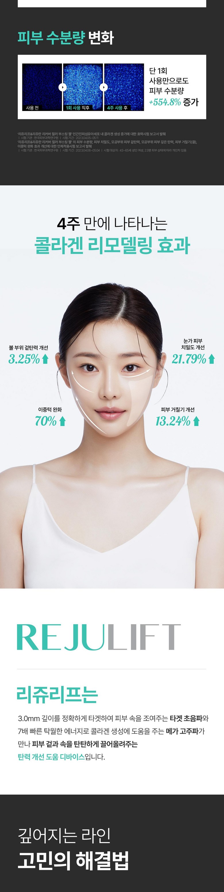 REJULIFT delivers focused ultrasound energy up to 3.0mm deep into your skin, ensuring no spot is missed. This targeted ultrasound effectively tightens the skin from within, promoting a firmer, more lifted appearance.