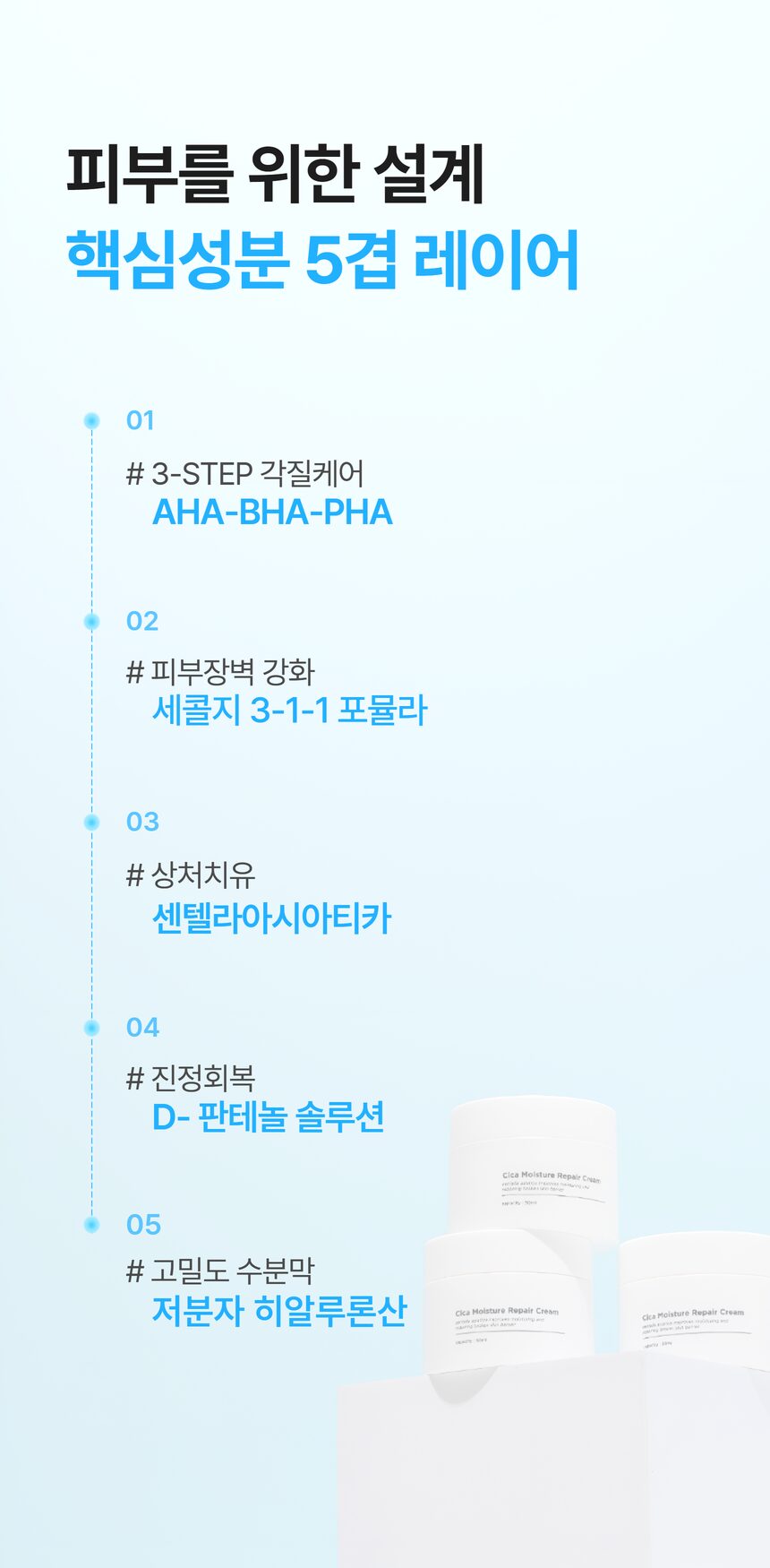 Uneven skin is often caused by insufficient moisture and an accumulation of old dead skin cells. REPURELY Cica Moisture Repair Cream targets these issues with a comprehensive, irritation-free formula that combines exfoliation, hydration, and skin barrier repair.