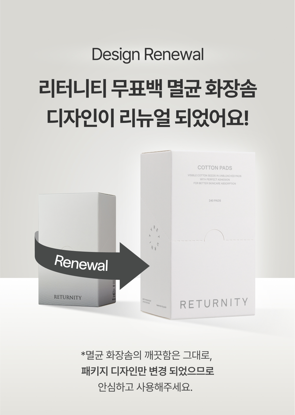Experience the refreshed look of RETURNITY! We are thrilled to announce the design renewal for our beloved RETURNITY Unbleached Sterile Cotton Pads. While our packaging has received a modern, sleek makeover, the unparalleled cleanliness, superior quality, and gentle care you trust remain absolutely the same. Use with complete confidence, knowing you’re getting the same exceptional product in a beautiful new package!