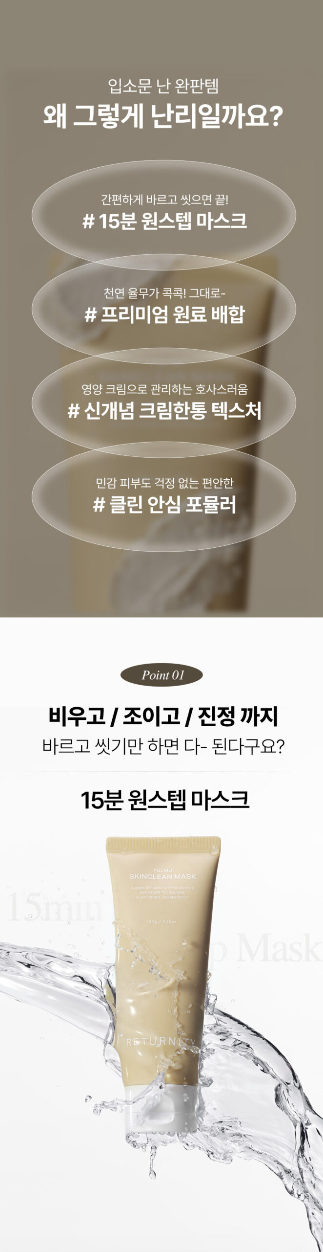 I’ve recently had the chance to try out the RETURNITY Yulmu Skin Clean Mask Pack, and I must say—it’s a breath of fresh air in my skincare routine here in vibrant Chicago. Unlike typical clay masks that leave your skin feeling stripped, this product worked wonders without making my face feel tight or dry afterward. In just a quarter-hour, I noticed diminished redness around my cheeks and noticeably smoother texture; it even rivals some higher-end brands I’ve used before! The unique kaolin blend definitely does what it promises: absorbing excess oils while refreshing dull skin—all wrapped up in one handy package! This isn’t another over-hyped gimmick; it’s genuinely effective for real people looking to restore their glow amidst busy urban life!