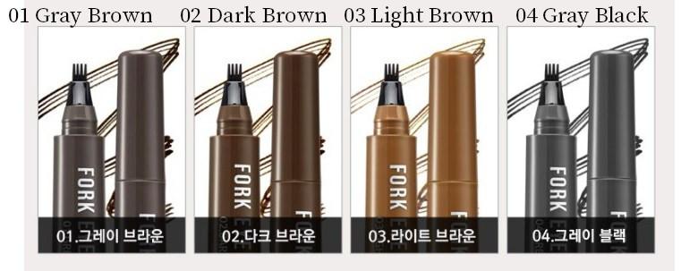 The RIRE Fork Eyebrow Tint features an innovative 4-prong fork tip that mimics the microblading technique for incredibly natural-looking brow strokes. Available in four shades from Grey Brown to Grey Black, this unique pen creates hair-like lines that fill in sparse brows with professional precision.