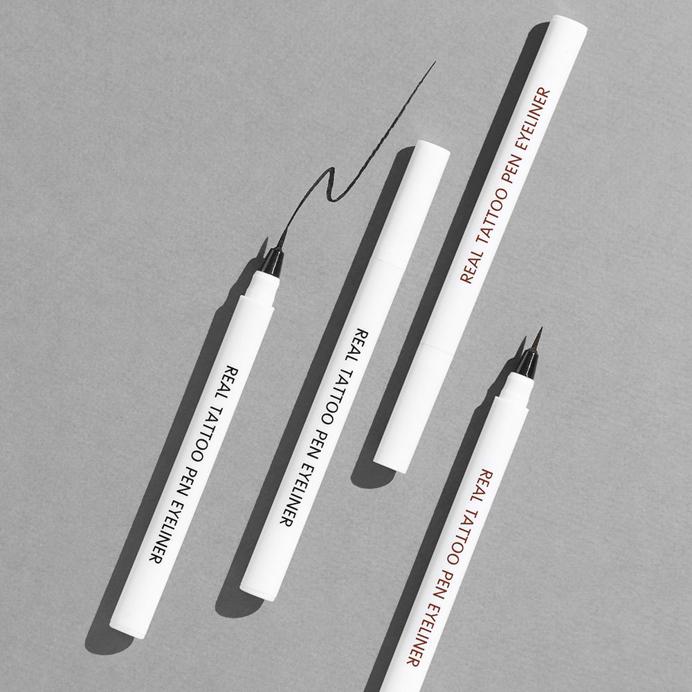 The RIRE Real Tattoo Pen Eyeliner delivers tattoo-like lasting power in a sleek white pen format. This precision eyeliner features a fine tip for detailed line work and a formula that stays put from morning to night without smudging, fading, or transferring.