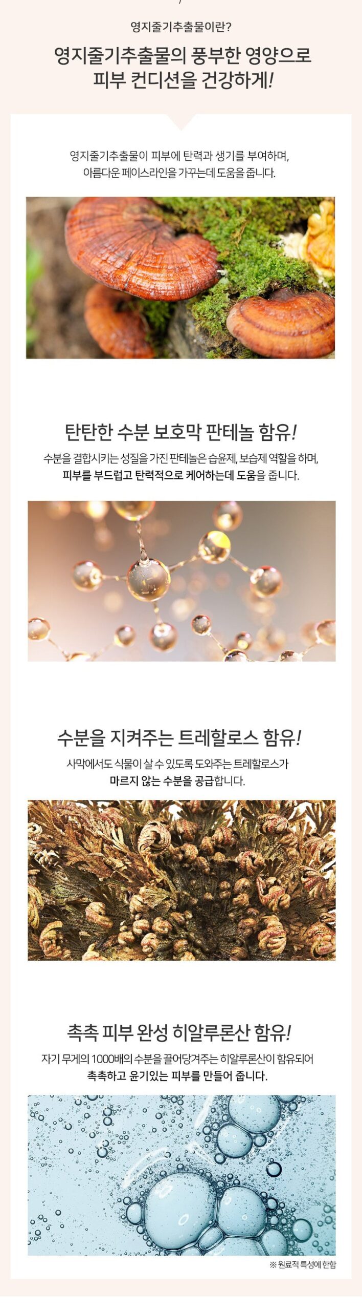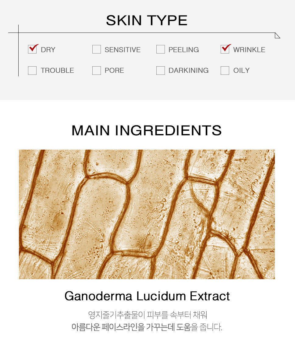 Reishi stem extract gives elasticity and vitality to the skin and helps to maintain a beautiful face line.