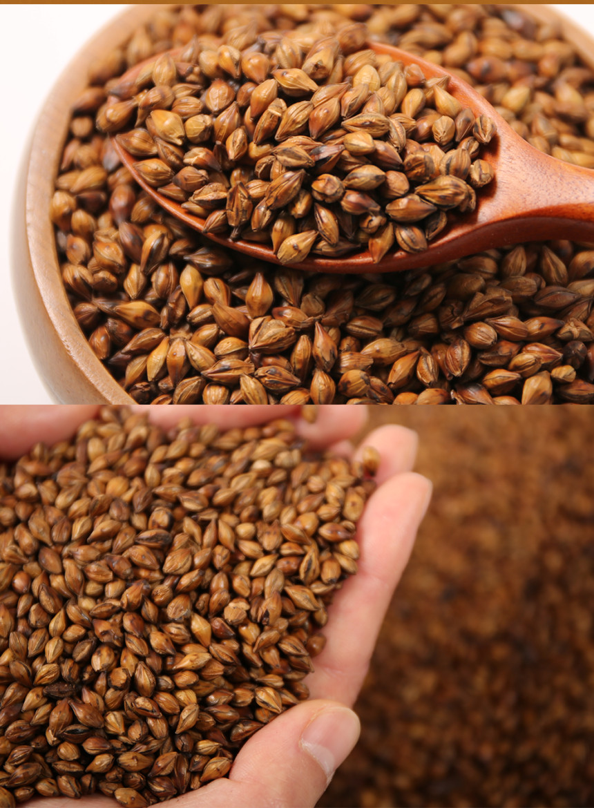 For this roasted barley tea, hulled or six-row barley is used, ensuring a robust flavor when brewed.