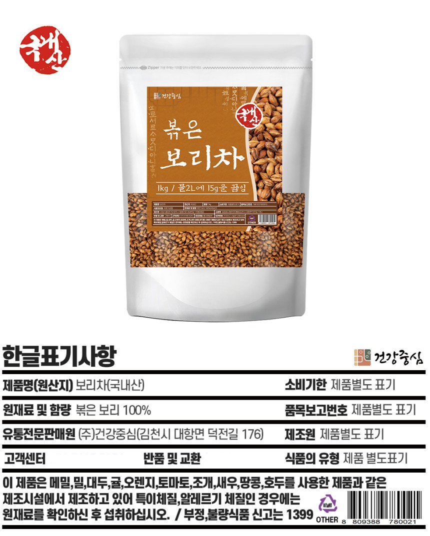 Enjoy the rich, nutty aroma of domestically produced roasted barley tea, crafted from carefully selected Korean barley. With its smooth, savory flavor and natural caffeine-free profile, this tea makes an excellent daily beverage for the whole family.