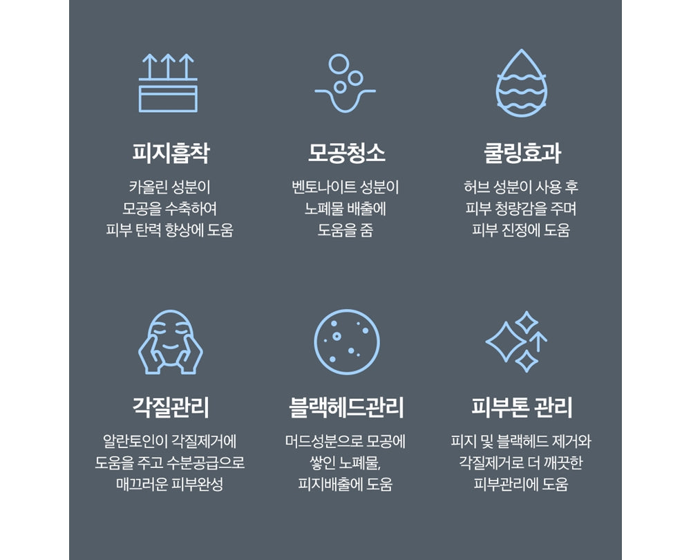 Mud ingredients help to discharge waste and sebum accumulated in pores