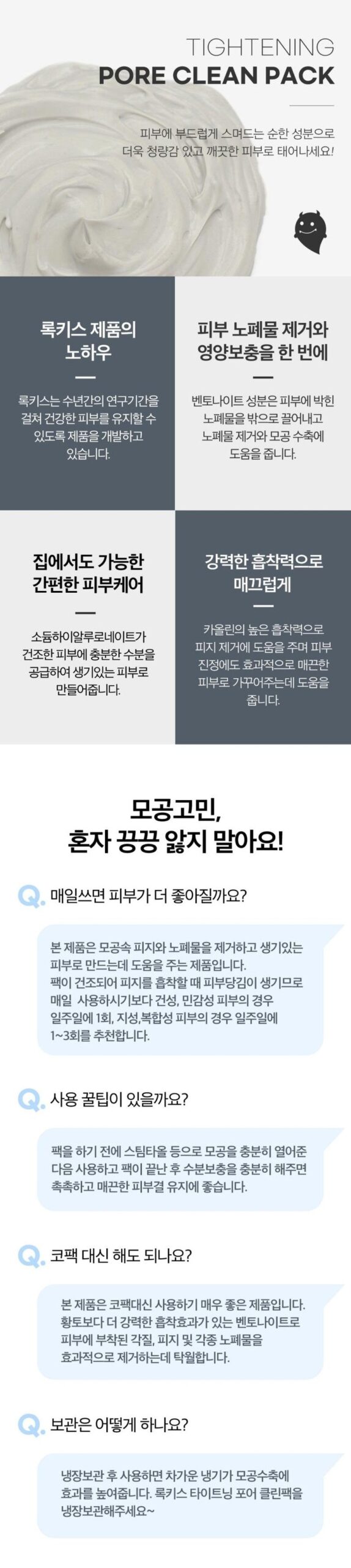 Rokkiss Tightening Pore Clean Pack Ingredient TIPS