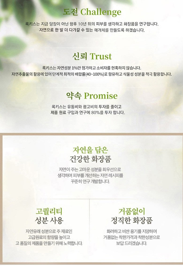 Rokkiss only adds 1% of natural ingredients and does not mislead consumers. In the use of natural extracts, it is contained in an optimal blending ratio (40-100%) in stages, and vegetable ingredients are actively utilized.