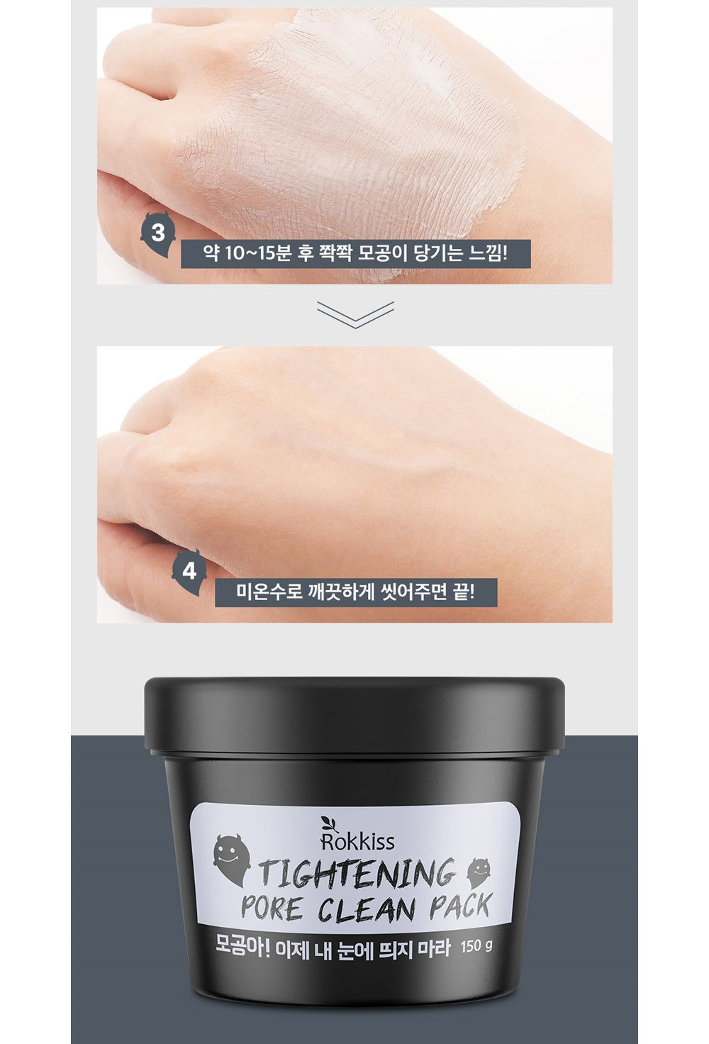 Rockkis Tightening Pore Clean Pack contains ingredients that are excellent for sebum absorption and pore convergence, helping clean and elastic skin. You can feel the distinct difference in ingredients now at Rokkiss