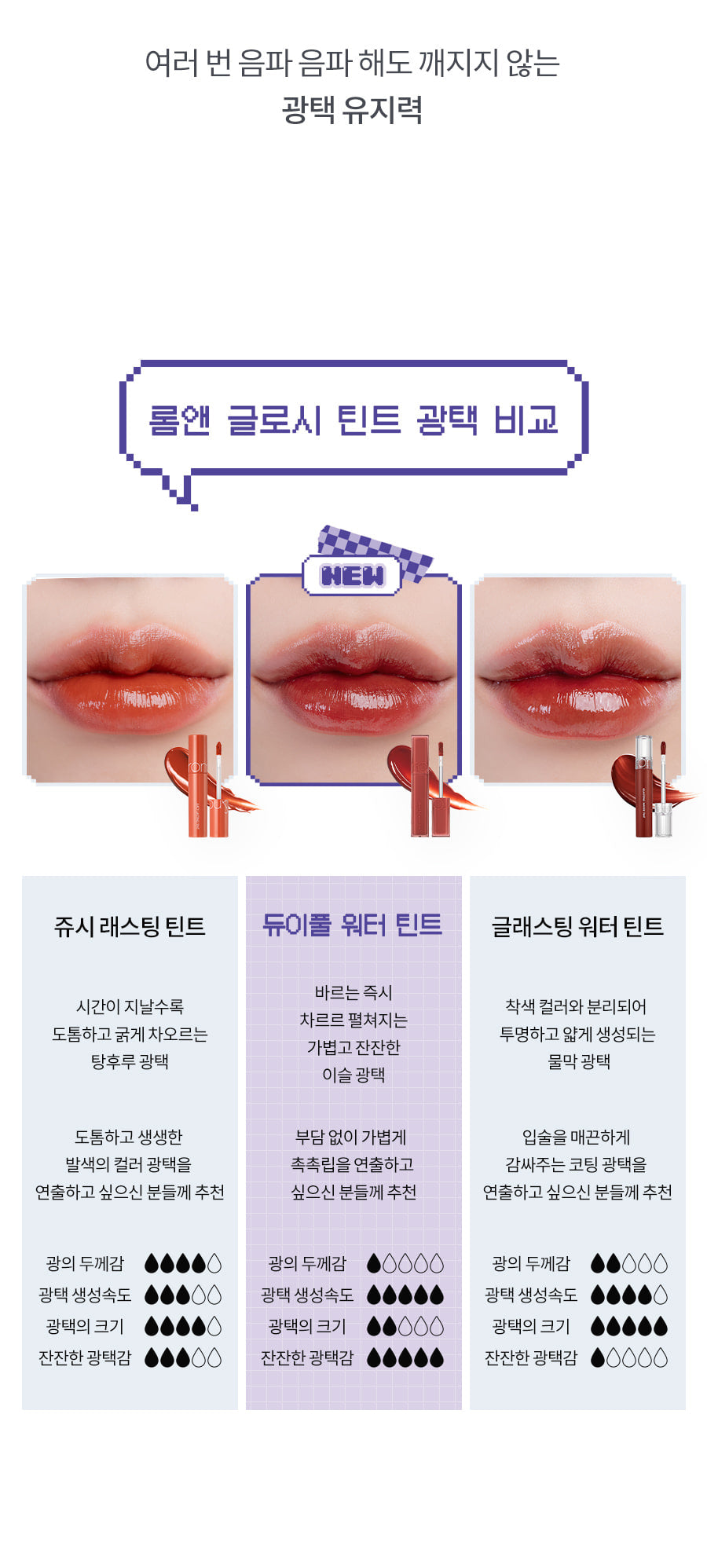 The Dewy-ful Water Tint delivers an exhilarating burst of freshness to the lips, as if kissed by morning dew. Each shade evokes vibrant expressions effortlessly.