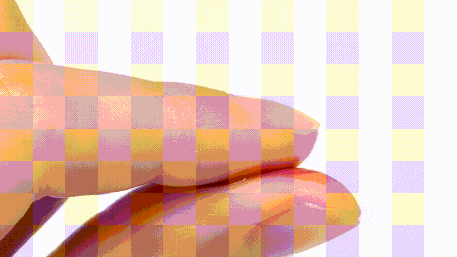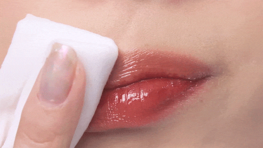 After applying the desired amount, softly press your lips together 2-3 times to blend.