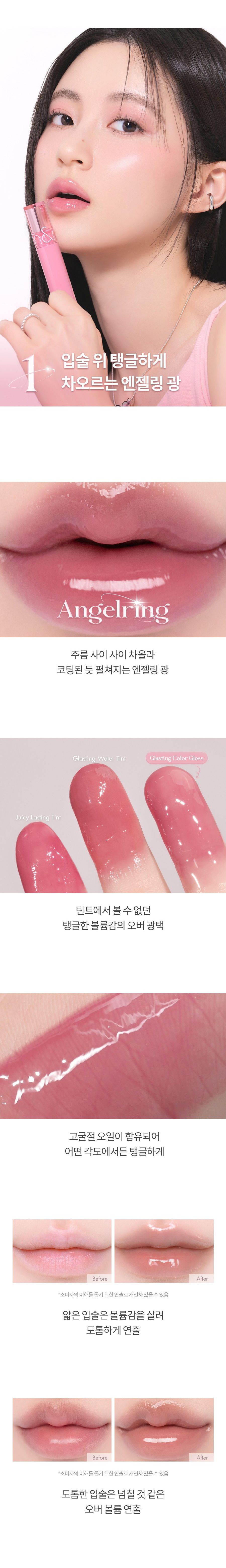 Discover the “Angel Ring Glow” with rom&nd Glasting Color Gloss. This high-shine lip gloss delivers a bouncy, voluminous glass-like finish that makes your lips look plump and hydrated without any sticky feeling. The sheer, buildable color blends naturally with your lip tone for a fresh, vibrant look.