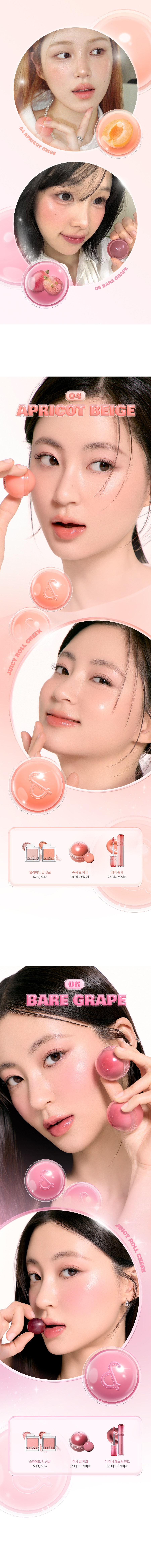 Discover the secret to a naturally radiant complexion with the rom&nd Juicy R Cheek. This innovative cream blush is designed to deliver a fresh, dewy flush that looks effortlessly vibrant and healthy. Inspired by the succulent hues of nature, its unique spherical design and blendable formula make achieving a “just-pinched” look simpler than ever.