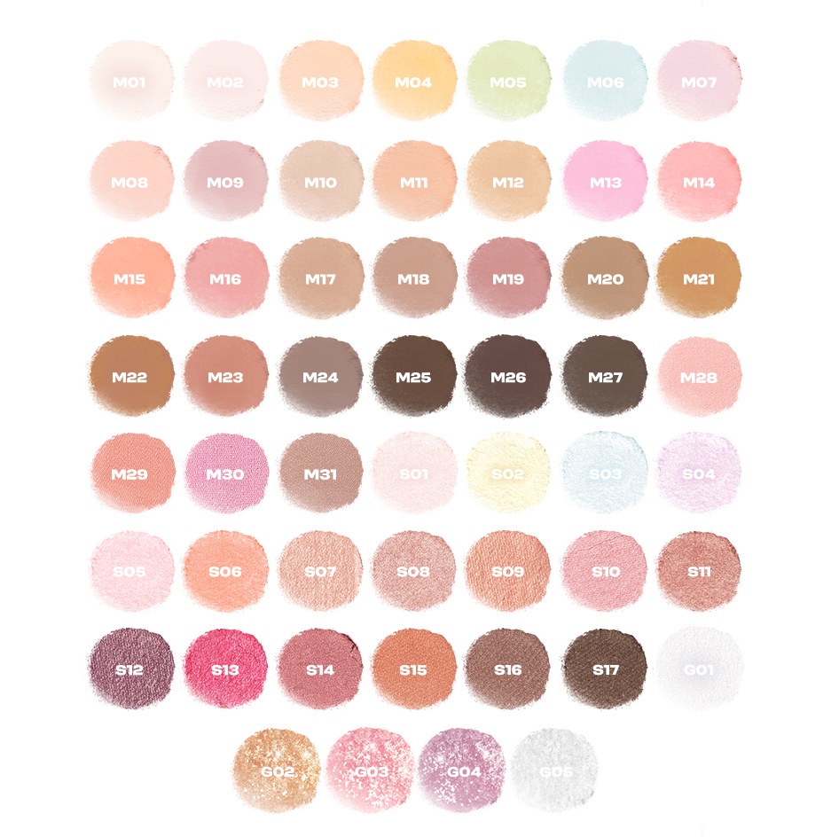 Matte (M Series): Perfect for defining, contouring, and creating a soft, diffused look. From natural nudes to deep browns and subtle pastels, these velvety smooth shades are your everyday staples.