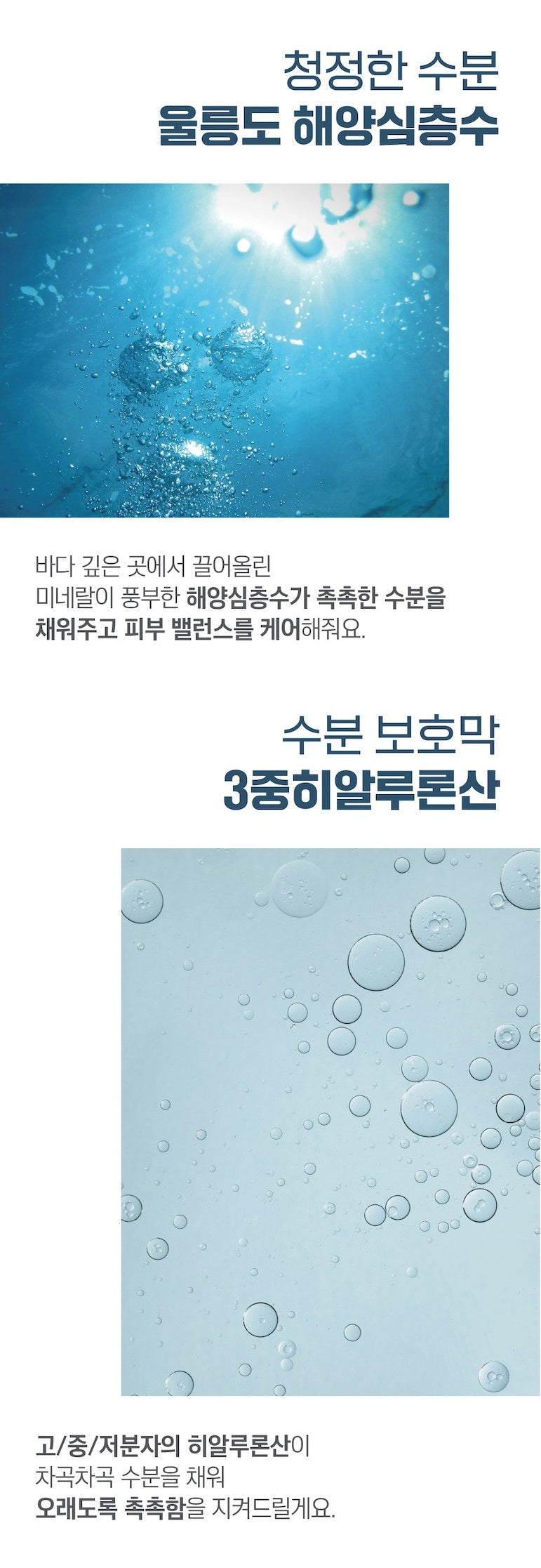 Mineral-rich deep sea water drawn from the depths of the sea replenishes moisture and cares for skin balance.