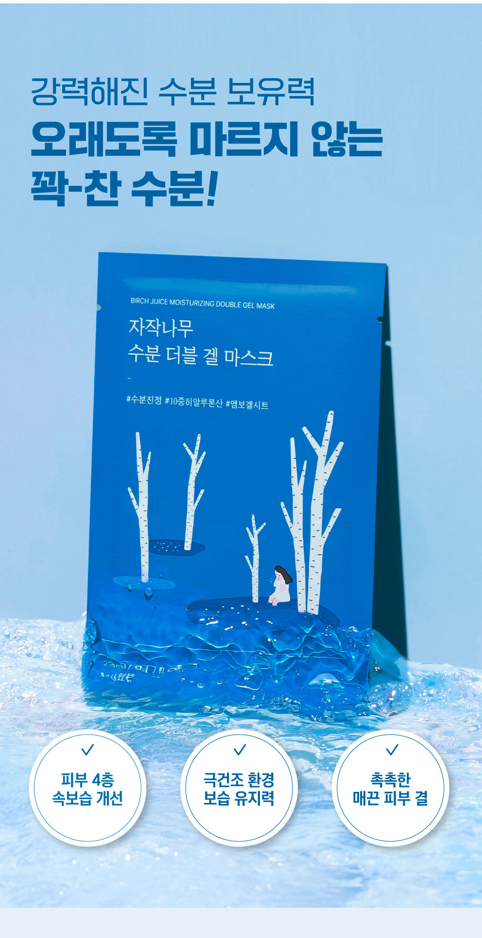 The Round Lab Birch Juice Moisturizing Double Gel Mask is a cooling hydrogel mask to instantly replenish and soothe dry, sensitive or tired skin. Richly infused with Birch Juice, which has a special ability to reduce inflammation, purifies and hydrates skin with 17 amino acids, minerals, antioxidants and vitamins. 10 types of Hyaluronic Acid pumps skin up with hydration, while Glyceryl Glucoside boosts skin elasticity for smooth, healthy and radiant skin.Its dual-gel structure adheres seamlessly to the skin, delivering long-lasting moisture and comfort while helping to strengthen the skin barrier.