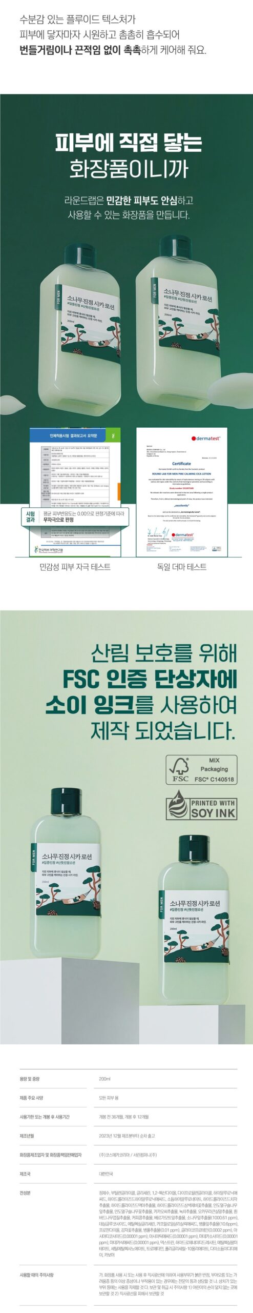 ROUND LAB for Men Pine Calm Cica Lotion 200ml
