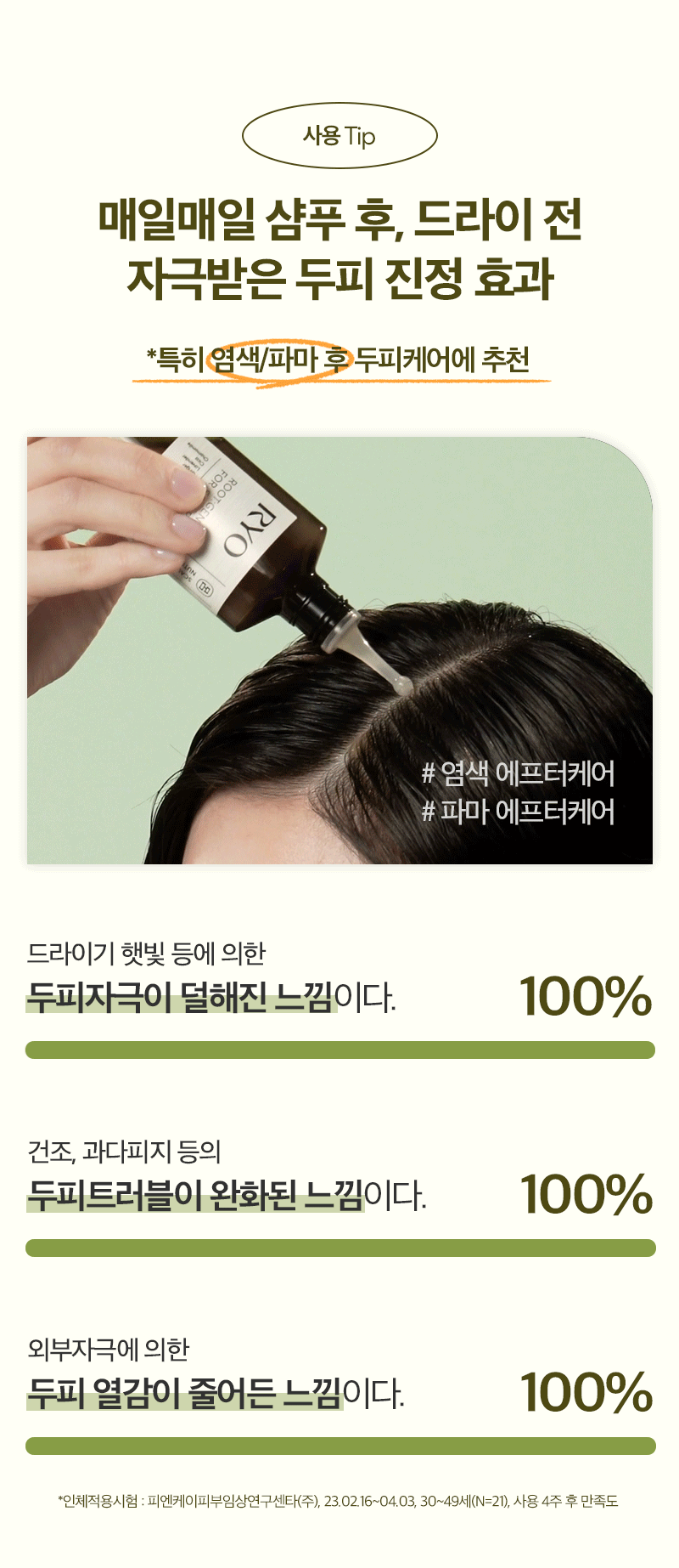 Apply daily after shampooing and before drying your hair. Use the applicator to distribute the essence evenly across your scalp, focusing on problem areas. Particularly recommended for post-coloring and perm care for soothing relief.