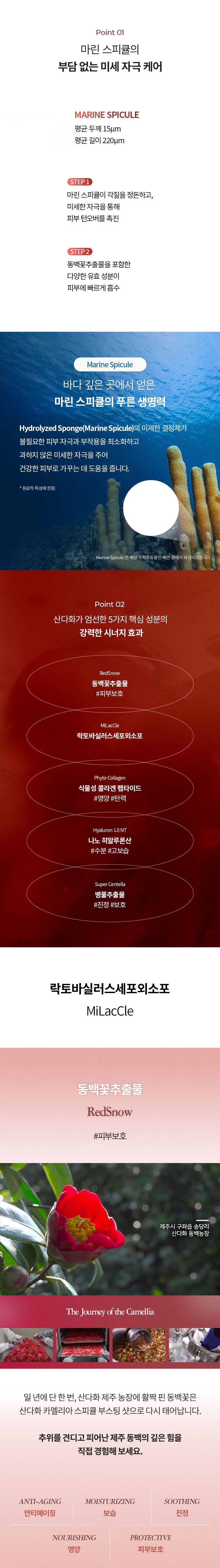 Every October, the beautiful camellia flowers bloom on Jeju Island, embodying incredible resilience and vitality. The SANDAWHA Camellia Spicule Boosting Shot captures this potent energy, infusing your skin with the powerful life force of Jeju camellia for comprehensive care.