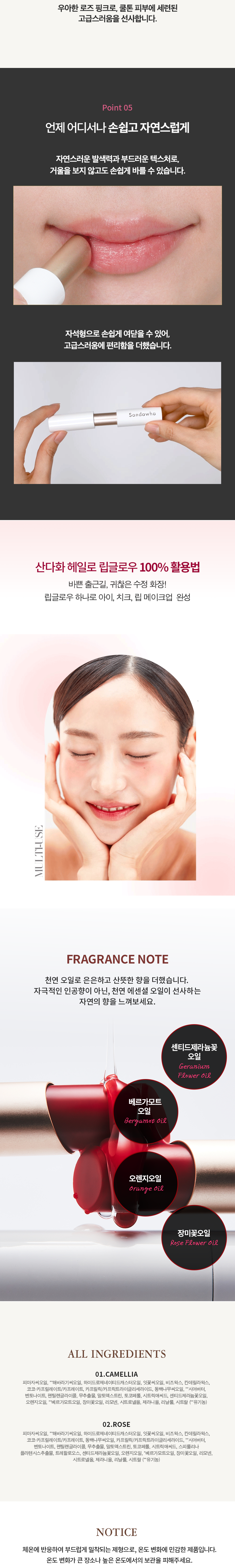 In addition to these, Sandawha Floral Halo Lip Glow contains various other natural oils and butters to provide rich moisture and deep nourishment to dry lips, keeping them soft and supple.