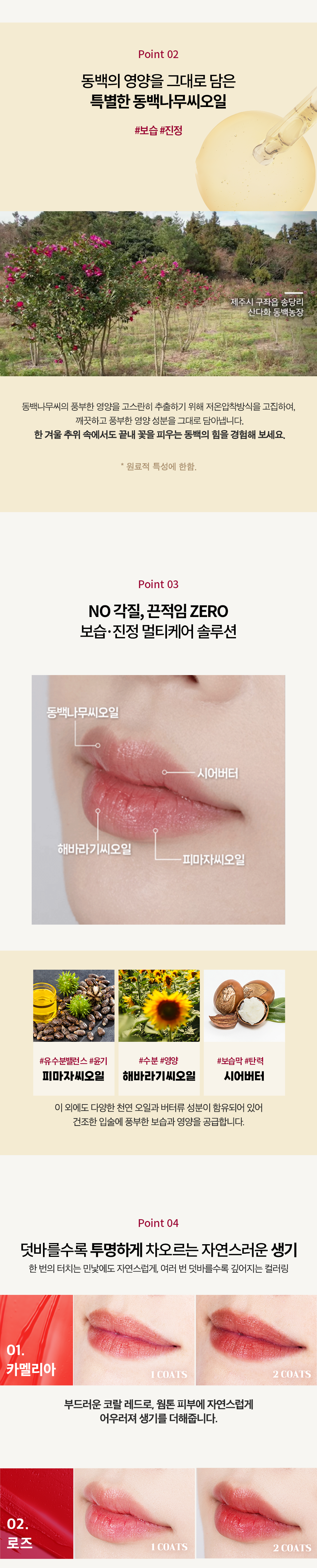 To meticulously extract the rich nutrition of camellia seeds, we adhere to a cold-pressed method, preserving the full nutrition and efficacy of Jeju Camellia Seed Oil. Experience the powerful vitality of camellia, which blooms vibrant red flowers even in the harsh cold of winter.