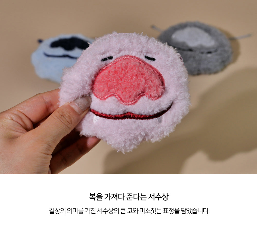 It is said that touching its big nose brings good luck, making this pouch not just a practical item but also a charming token of fortune. The Seosu-sang’s smiling expression and iconic nose add to its adorable and auspicious appeal.