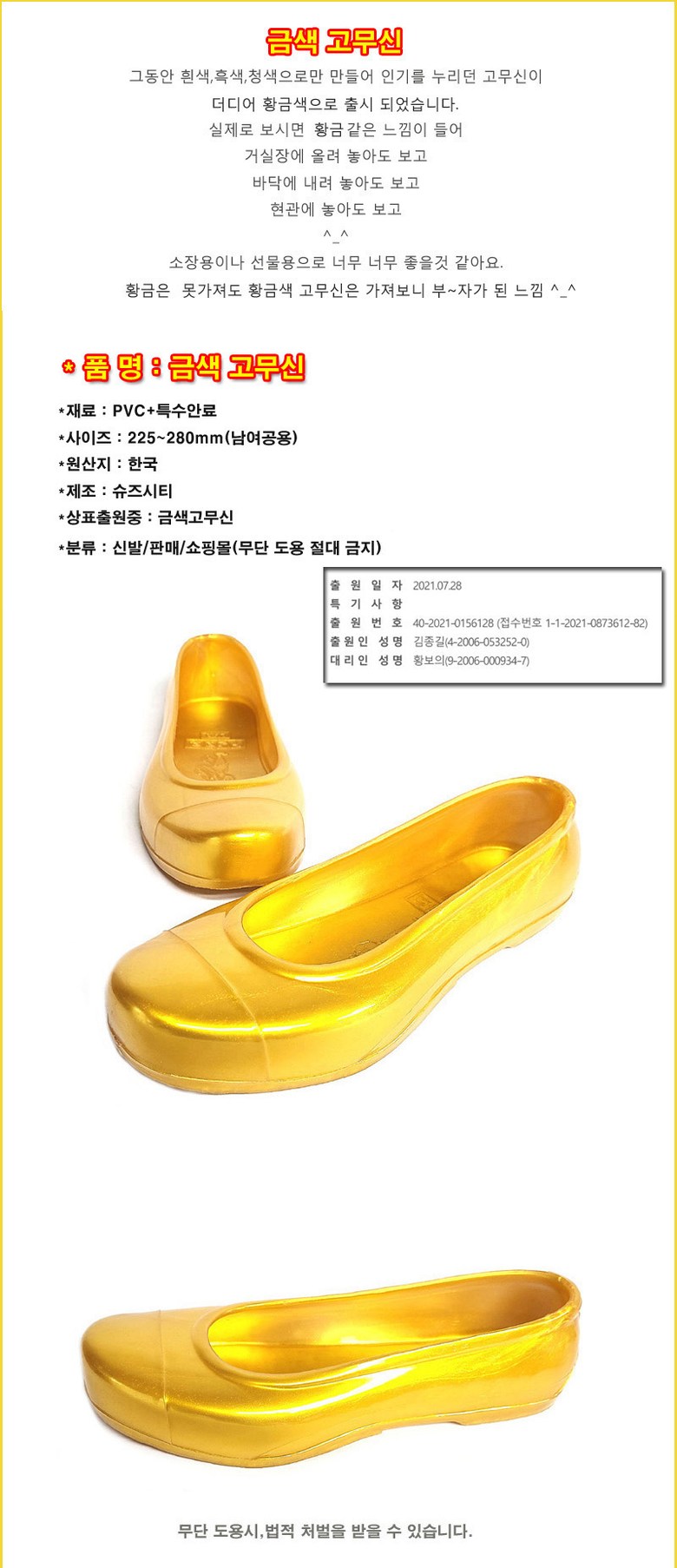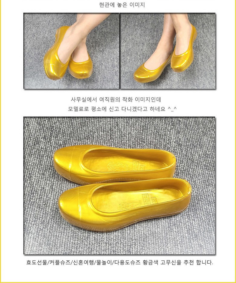 Even if you can’t afford real gold, these gold-colored rubber shoes give you that luxurious feeling with every step.