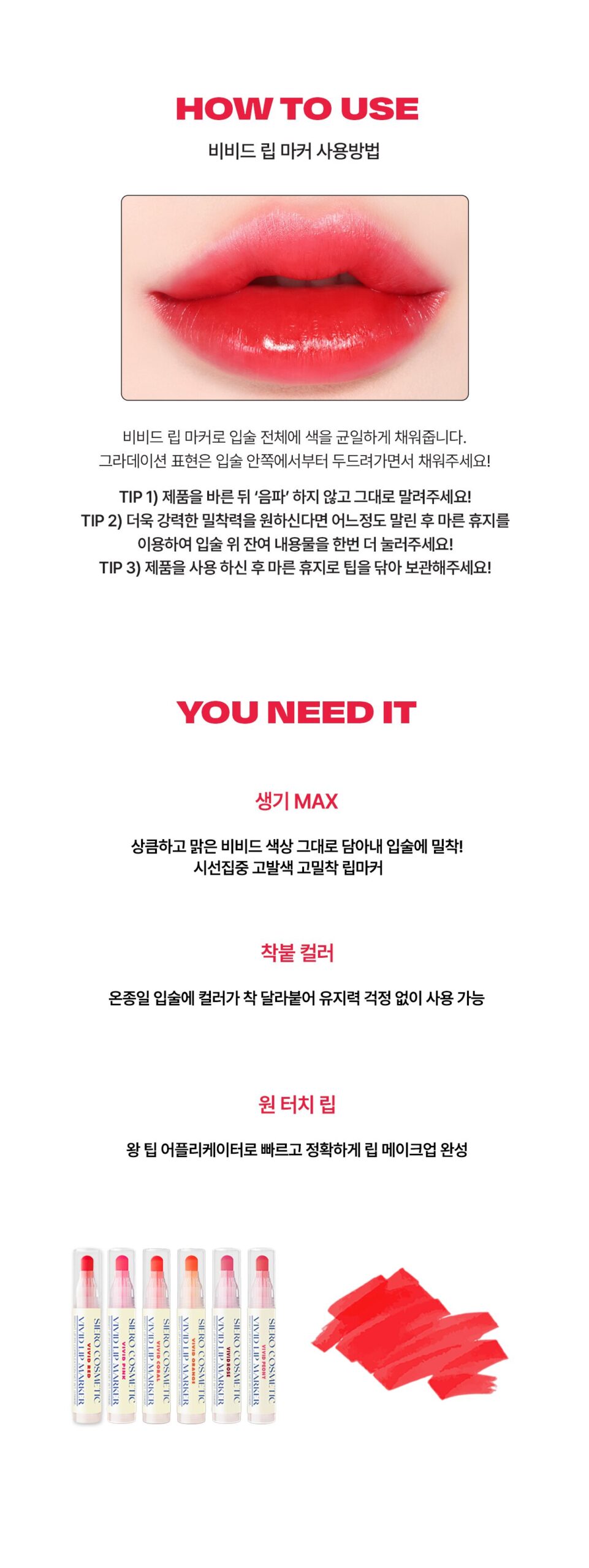 With the SIERO Vivid Lip Marker, you can enjoy long-lasting, vibrant lip color that stays fresh and comfortable all day.