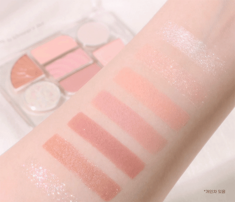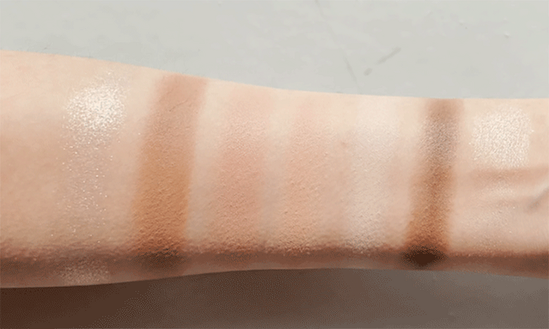 - Luminous Nude Shimmer (Top Right, Fan-Shaped): A soft, ethereal shimmer that brightens the eyes and provides a radiant highlight.