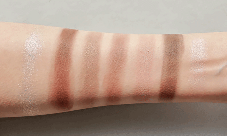 - Use the Warm Cocoa Matte (Middle Left) to define your crease and outer corner, blending upwards and outwards for a seamless effect.