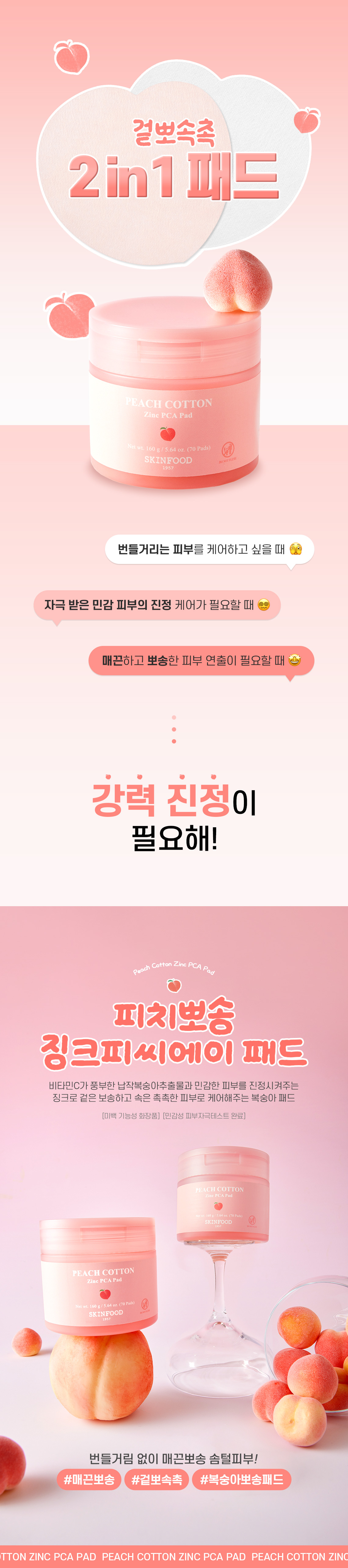 - Wipe: Take one SKINFOOD Peach Cotton Zinc PCA Pad from the jar.