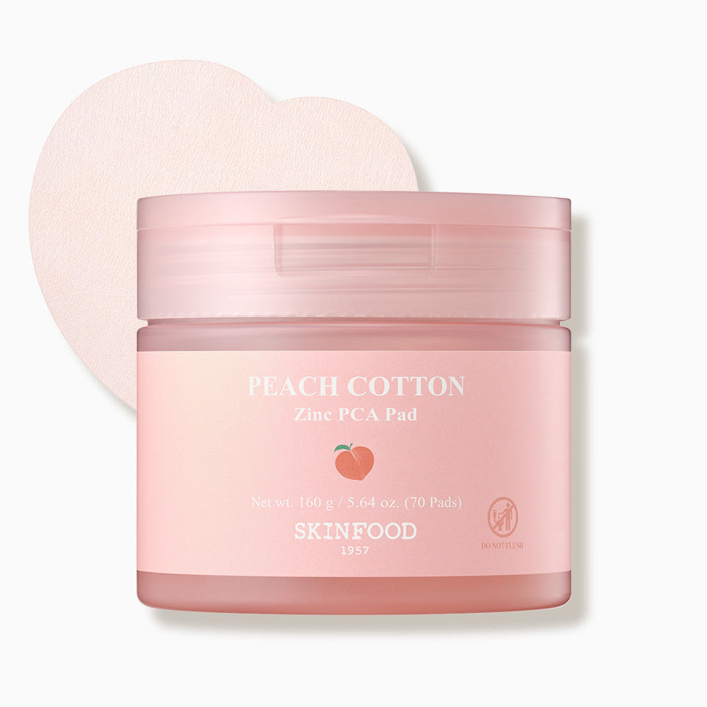 SKINFOOD Peach Cotton Zinc PCA Pad: Your Secret to Flawless, Matte Skin (70 Sheets)