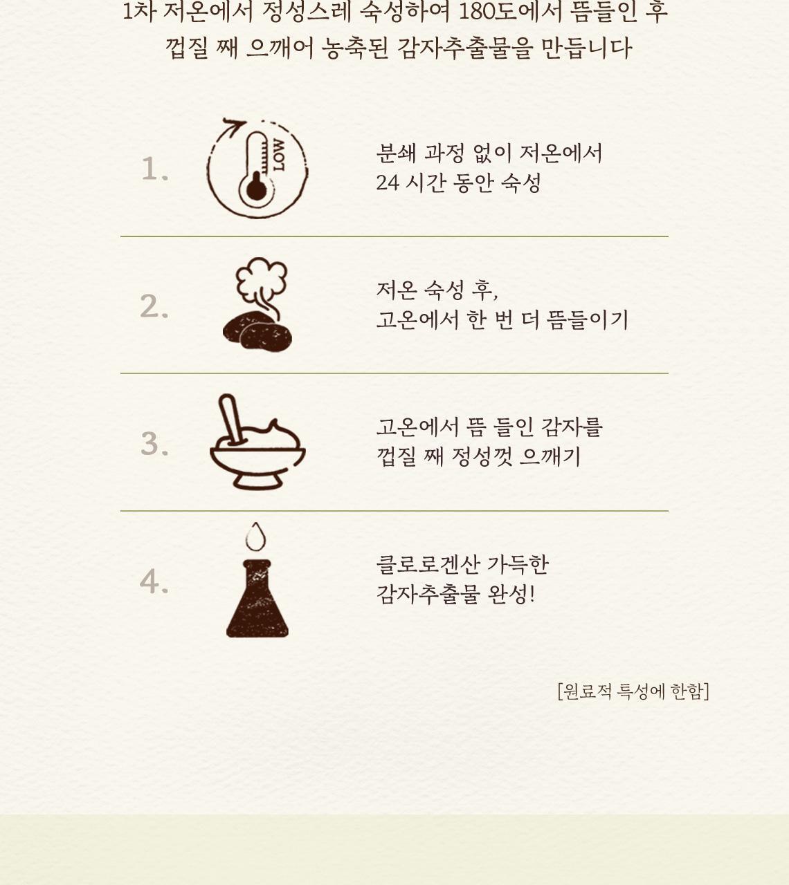 • Nutrient-Rich Potato Extract: Utilizing a specialized extraction method, the potato extract is rich in active ingredients and nutrients, obtained by ripening at low temperatures, followed by steaming at 180°C with the peel on, ensuring maximum efficacy.