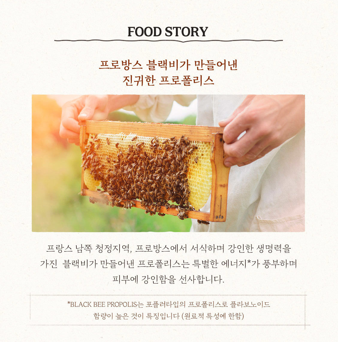 The special propolis of Provence Black Bee is born into a thicker extract with the power of lactic acid bacteria fermentation for 72 hours.