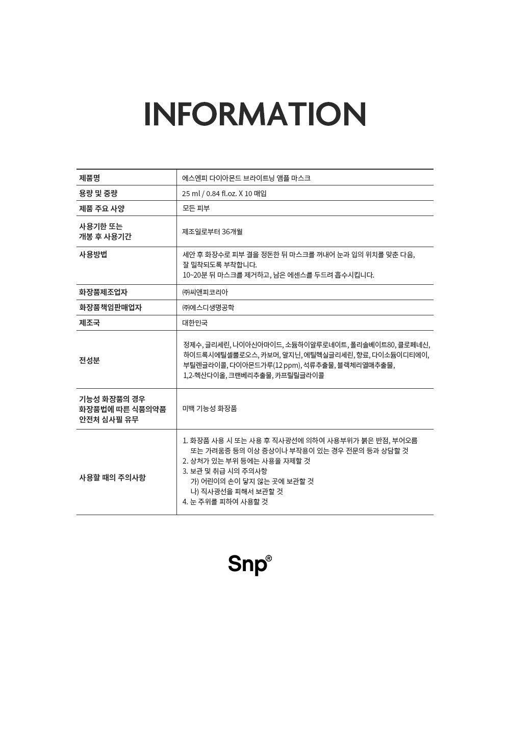 | Product Name | SNP Diamond Brightening Ampoule Mask |