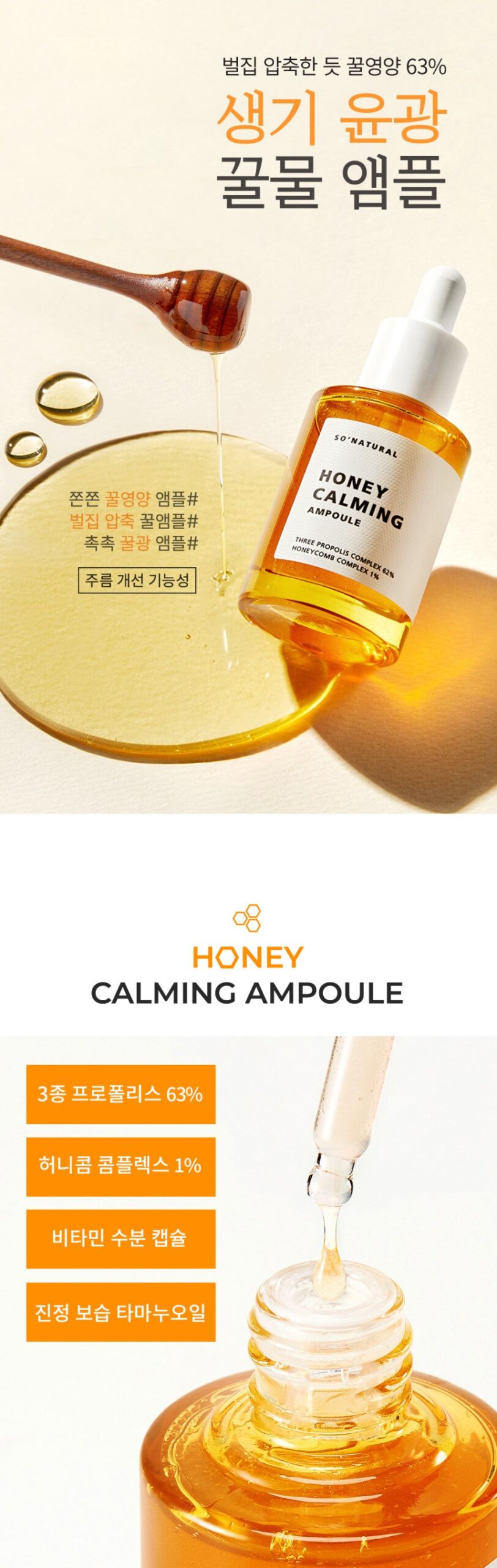 Discover the luxurious blend of 63% Honey Nutrition and Honey Water Glow Ampoule, specifically formulated for skin showing signs of wrinkles and dullness. This unique formula combines the power of three distinct types of propolis and a 1% Honeycomb Complex, enriched with vitamin moisture capsules, to deliver a soothing and moisturizing experience with Tamanu oil.