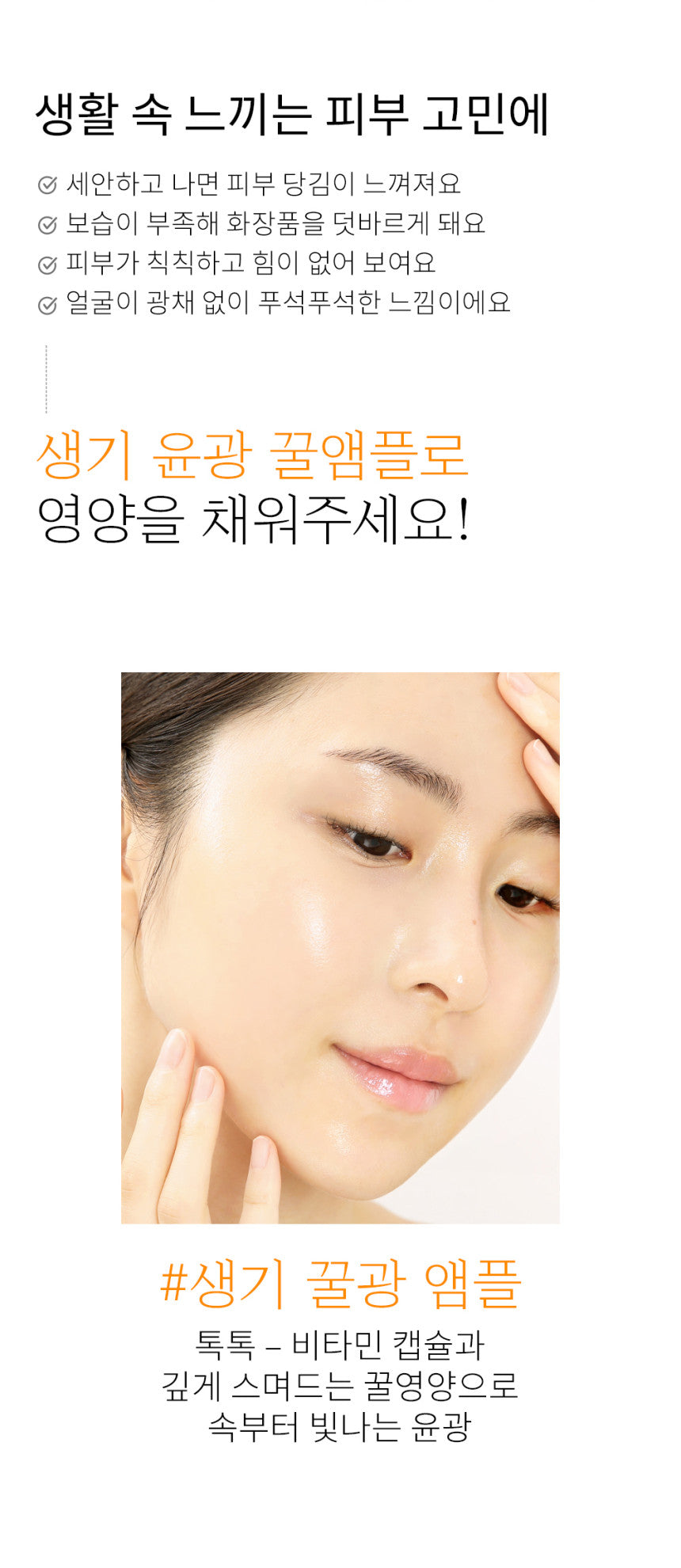 If you’ve noticed your skin feeling tight after cleansing, or if you find yourself reapplying cosmetics due to lack of hydration, our Vitality Honey Glow Ampoule is for you. Ideal for skin that looks dull, weak, and in desperate need of a radiant boost, this ampoule promises a glowing complexion from within.