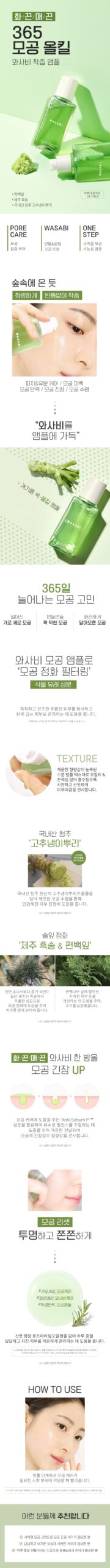 Embrace the cooling, purifying, and rejuvenating effects of our 365 Pore All Kill Wasabi Juice Ampoule and transform your skin into a bright, elastic, and pore-perfected canvas.