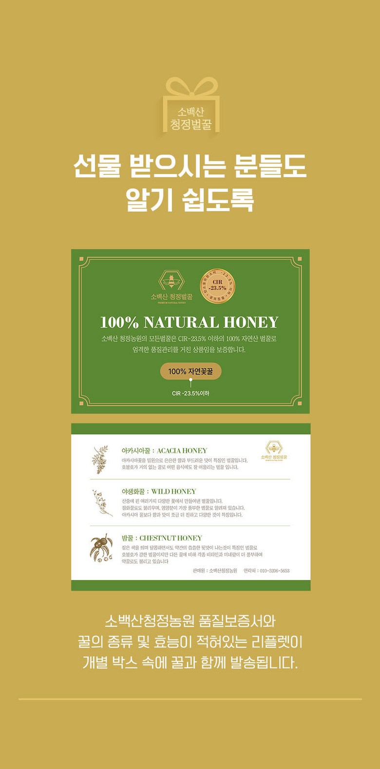 I chose this 2.4kg 100% natural acacia honey from Sobaeksan Cheongjeong Farm.