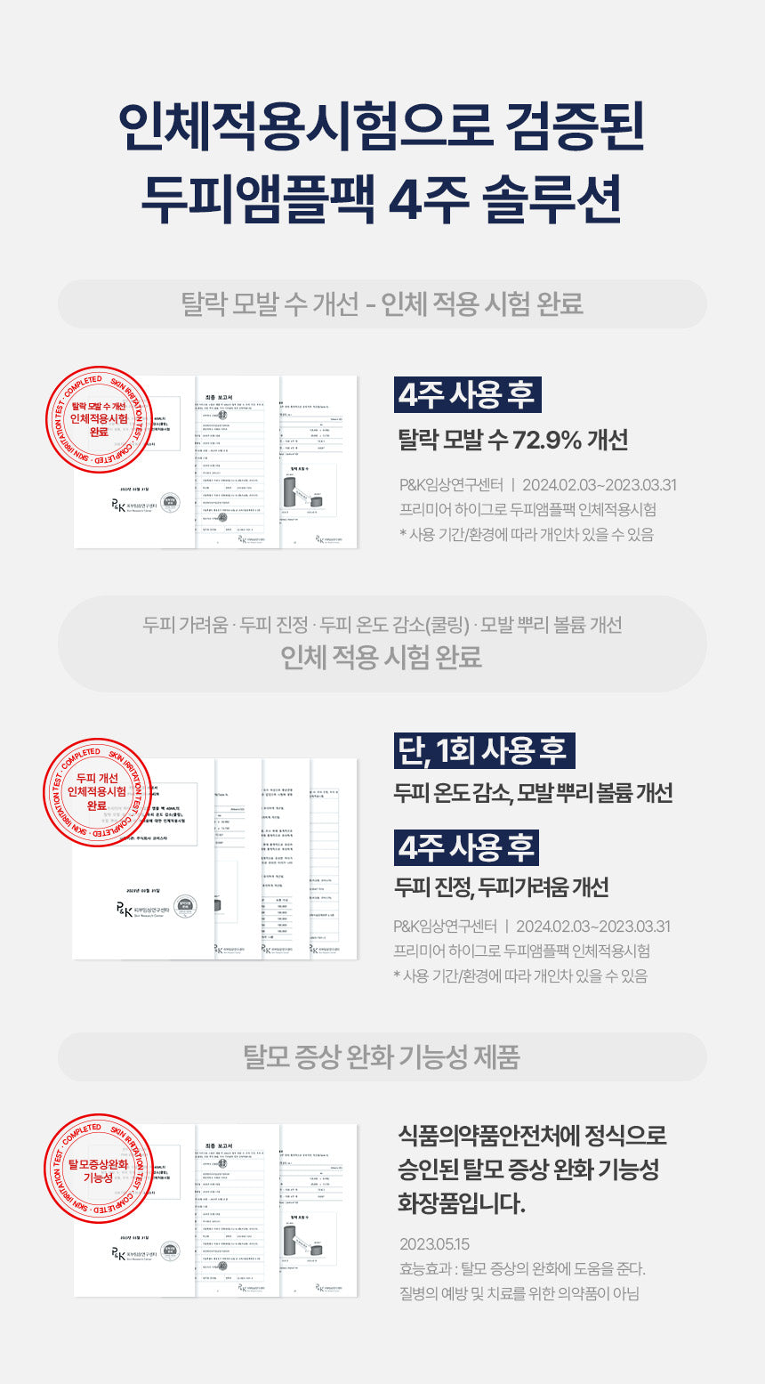 Formulated with the most effective ingredients used in intensive scalp care products for over two decades, this ampoule pack has undergone rigorous clinical trials, showing significant results in alleviating scalp itchiness, soothing the scalp, reducing scalp heat, and increasing hair volume. It has also received an “Excellent” grade in a skin safety evaluation conducted by a German dermatology test.