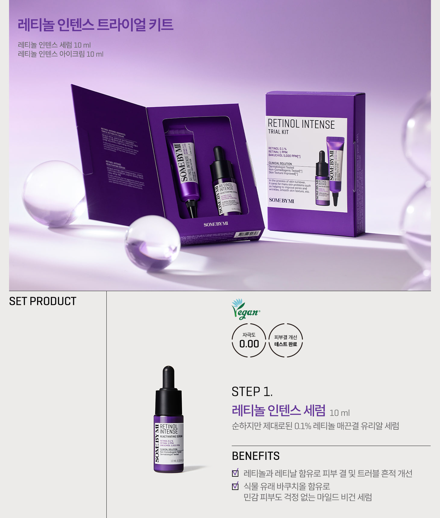 [Some By Mi Retinol Serum]: Water, Cyclohexasiloxane, Dicaprylyl Carbonate, Glycerin, Methylpropanediol, 1,2-Hexanediol, Niacinamide, Hydrogenated Poly(C6-14 Olefin), Panthenol, Tocopheryl Acetate, Piper Methysticum Leaf/Root/Stem Extract, Centella Asiatica Extract, Panax Ginseng Berry Extract, Glycyrrhiza Glabra (Licorice) Root Extract, Ficus Carica (Fig) Fruit Extract, Centella Asiatica Leaf Extract, Centella Asiatica Root Extract, Melaleuca Alternifolia (Tea Tree) Leaf Extract, Artemisia Capillaris Extract, Eclipta Prostrata Extract, Melia Azadirachta Leaf Extract, Elaeis Guineensis (Palm) Oil, Hydrogenated Lecithin, Glyceryl Stearate, Bakuchiol, Palmitic Acid, Sodium Polyacrylate, Stearic Acid, Xanthan Gum, Retinol (0.1 %), Acrylates/C10-30 Alkyl Acrylate Crosspolymer, Butylene Glycol, Dipotassium Glycyrrhizate, Adenosine, Tromethamine, Polyquaternium-51, Beta-Glucan, Cetyl Alcohol, BHT, Collagen, Myristic Acid, BHA, Leuconostoc/Radish Root Ferment Filtrate, Tocopherol, Bifida Ferment Lysate, Ceramide NP, Saccharomyces Ferment, Retinal, Asiaticoside, Glyceryl Polymethacrylate, Madecassoside, Propylene Glycol, Polyglyceryl-10 Oleate, Glycolipids, Glycine Soja (Soybean) Peptide, Resveratrol, Sucrose Distearate, Asiatic Acid, Madecassic Acid, Palmitoyl Tripeptide-1, Moringa Oleifera Seed Oil, PEG-100 Stearate, Polysorbate 20, Fragrance, Ethylhexylglycerin