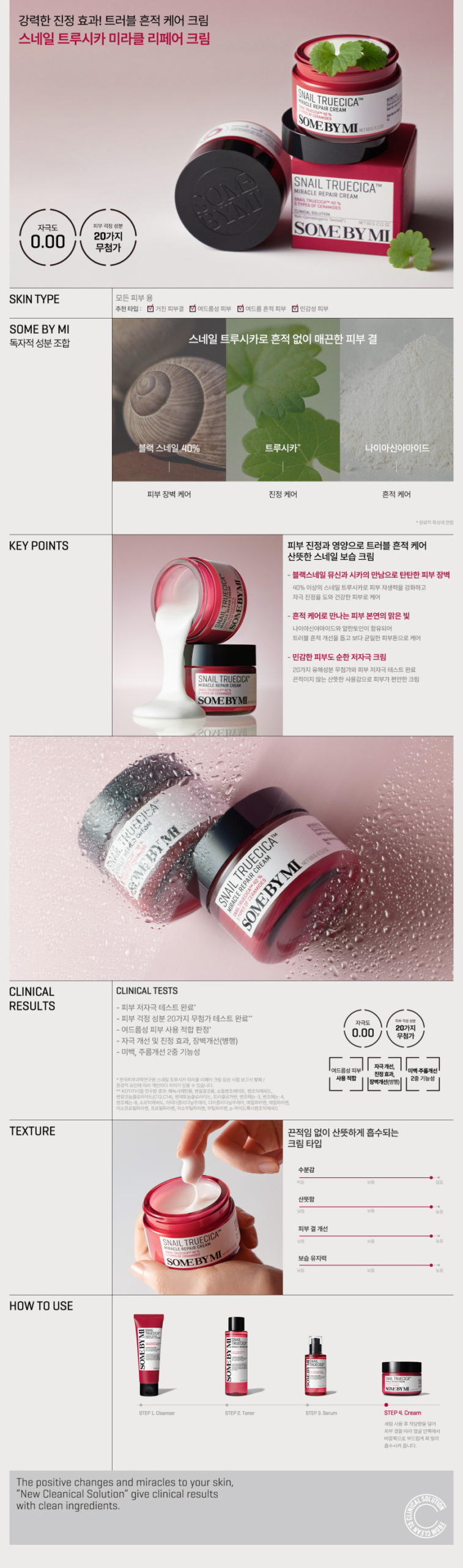 Formulated with highly concentrated 420,000ppm of snail Truecica consisting of tea tree, cica and mugwort to soothe irritated skin quickly, as well as black snail mucin to repair damaged skin barrier. For long-lasting effects, this repair cream is also infused with marine collagen, 5 kinds of ceramide and peptide to strengthen skin barrier. It boasts a lightweight, fast-absorbing formula that does not leave a sticky feeling, making it suitable for all skin types.
