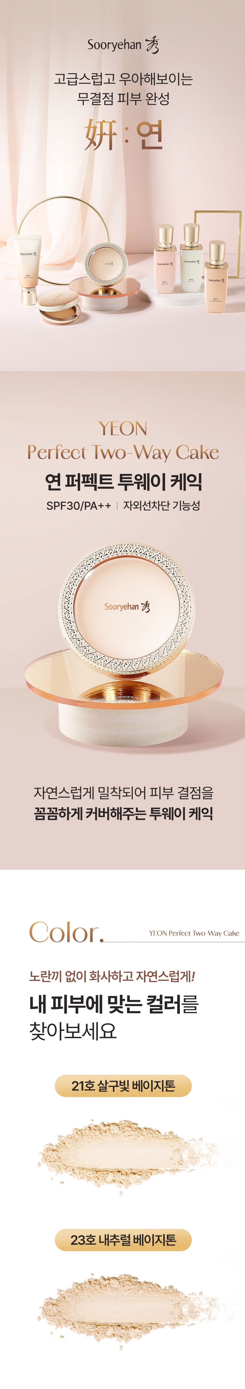 Discover the secret to luxurious, elegant, and flawless skin with the SOORYEHAN Yeon Perfect Two-Way Cake. This exquisite compact powder is designed to adhere naturally, meticulously covering imperfections and refining your complexion for a sophisticated finish that lasts all day.