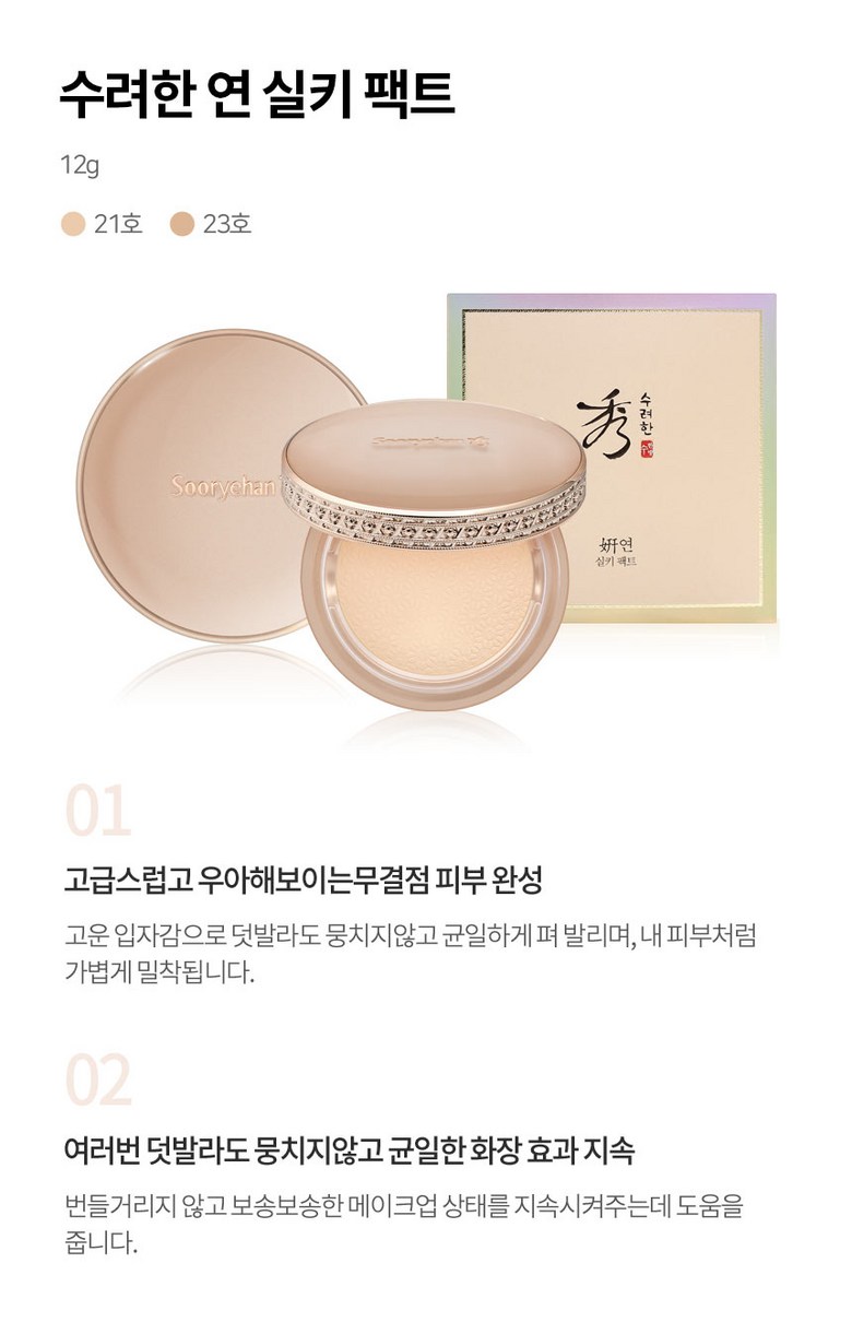 The Sooryehan Yeon Silky Pact is available in two exquisite shades to complement your natural skin tone, ensuring a perfect match for a radiant complexion: