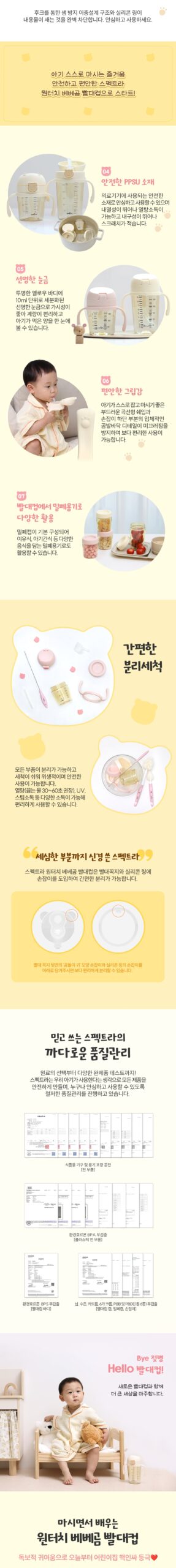 The soft curved shape makes it easy for babies to hold and drink on their own, and the three-dimensional bear paw detail at the bottom of the handle prevents slipping, making it more convenient to use.
