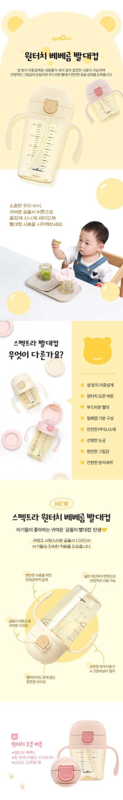 -It is opened by lightly pressing the bear button, so a baby can easily open it by himself.