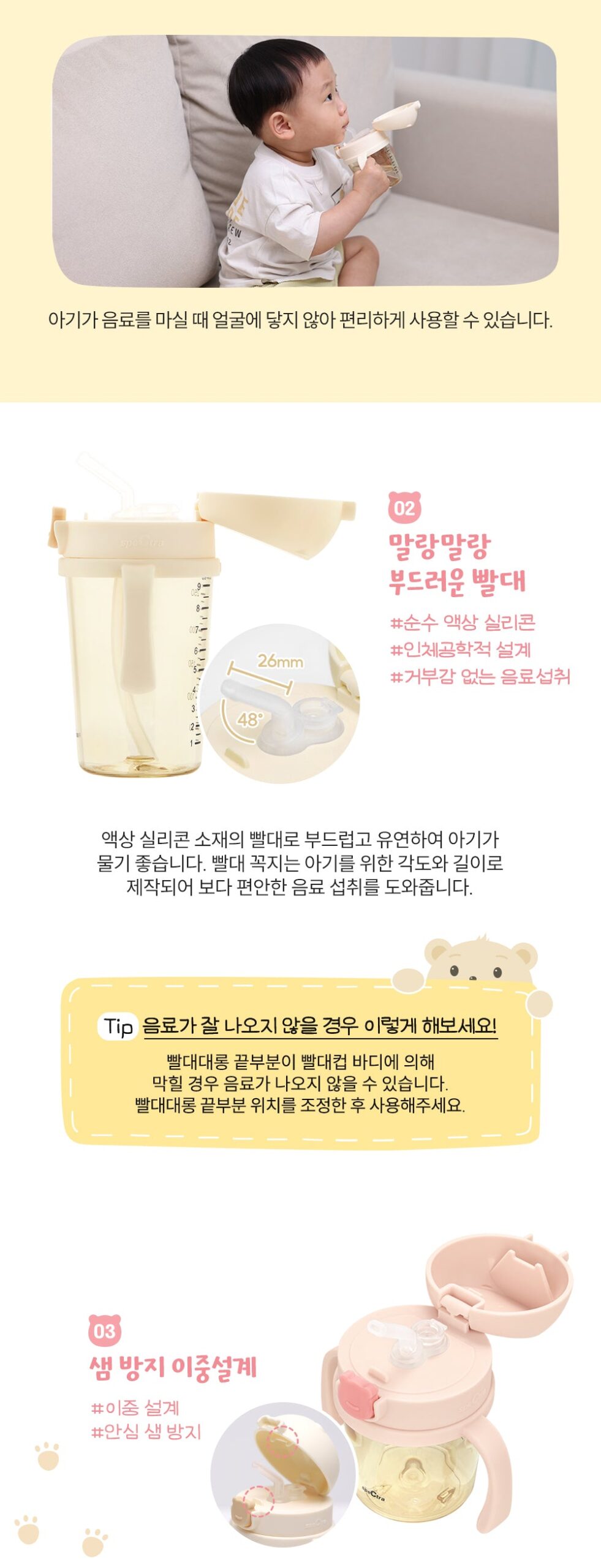 The straw tip is designed at an angle and length suitable for your baby, helping them drink more comfortably.